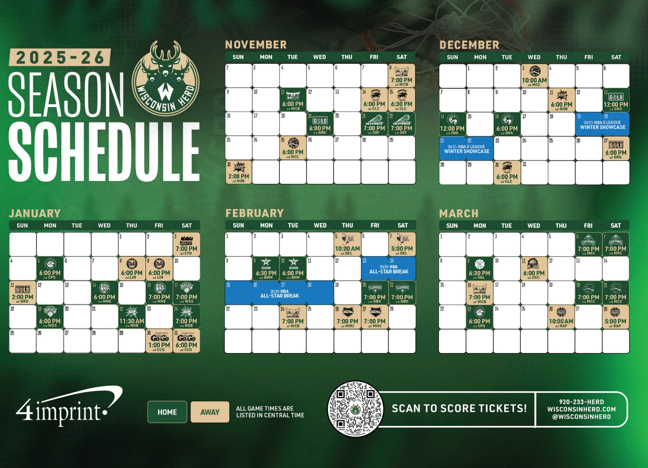 ![]() MON. JAN. 5 | BUCKS TAKEOVER NIGHT 2026 Herd Player Calendar presented by 4imprint (First 1,000 Fans) | N/A |