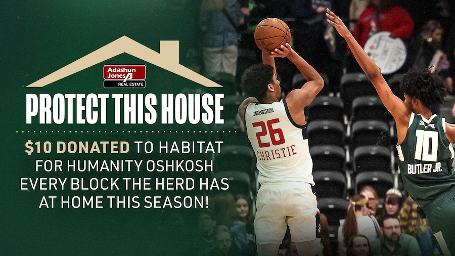 The Wisconsin Herd, NBA G League affiliate of the Milwaukee Bucks, and Adashun Jones Real Estate will team up for the third season of “Protect this House” where Adashun Jones will donate $10 to Habitat for Humanity of Oshkosh for every block by the Herd at a home game. Over the last two seasons, the Herd and Adashun Jones Real Estate raised over $3,400 for Habitat for Humanity.