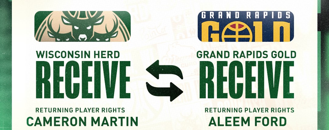 The Wisconsin Herd, NBA G League affiliate of the Milwaukee Bucks, has acquired the returning player rights to Cameron Martin from the Grand Rapids Gold in exchange for the returning player rights to Aleem Ford.
