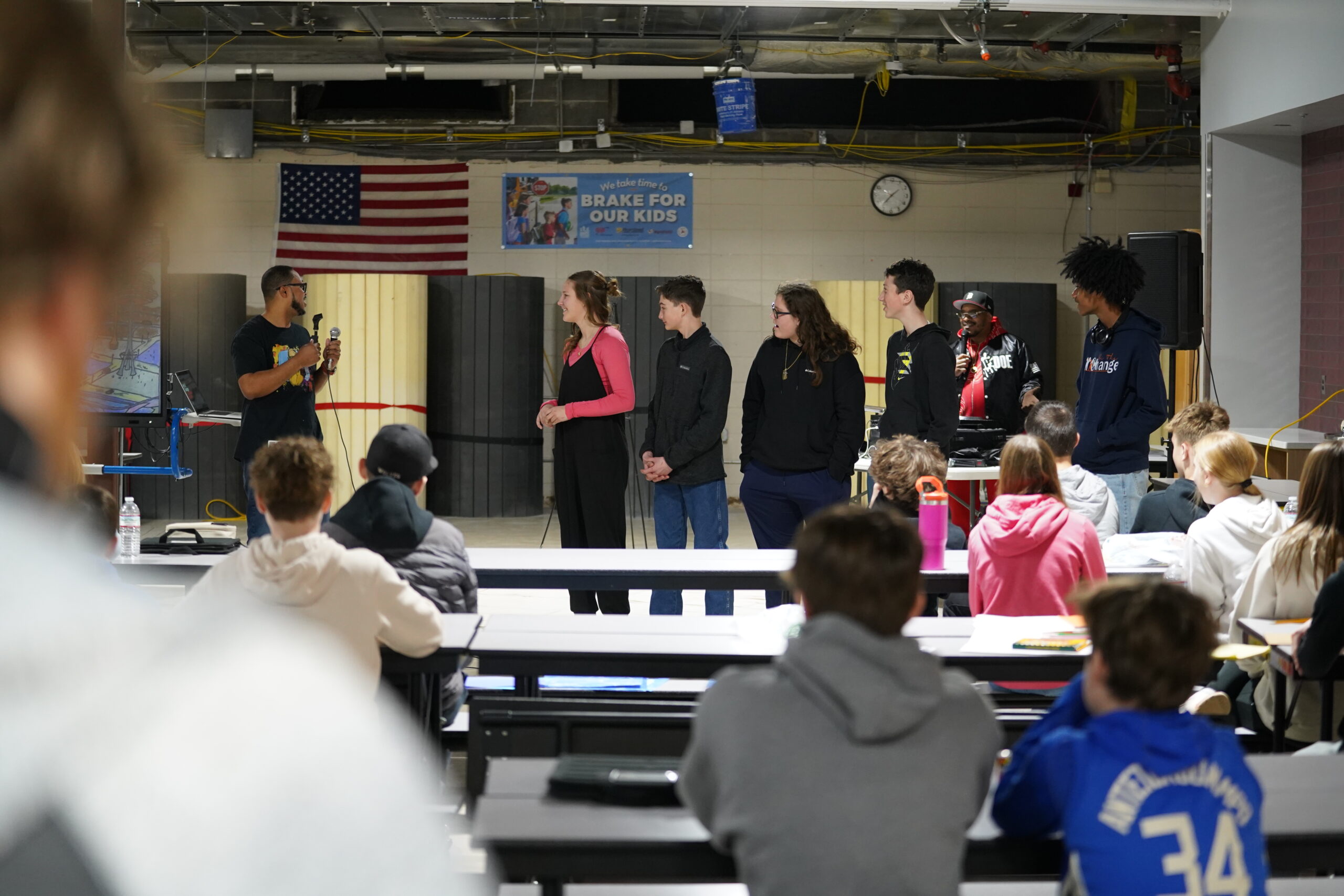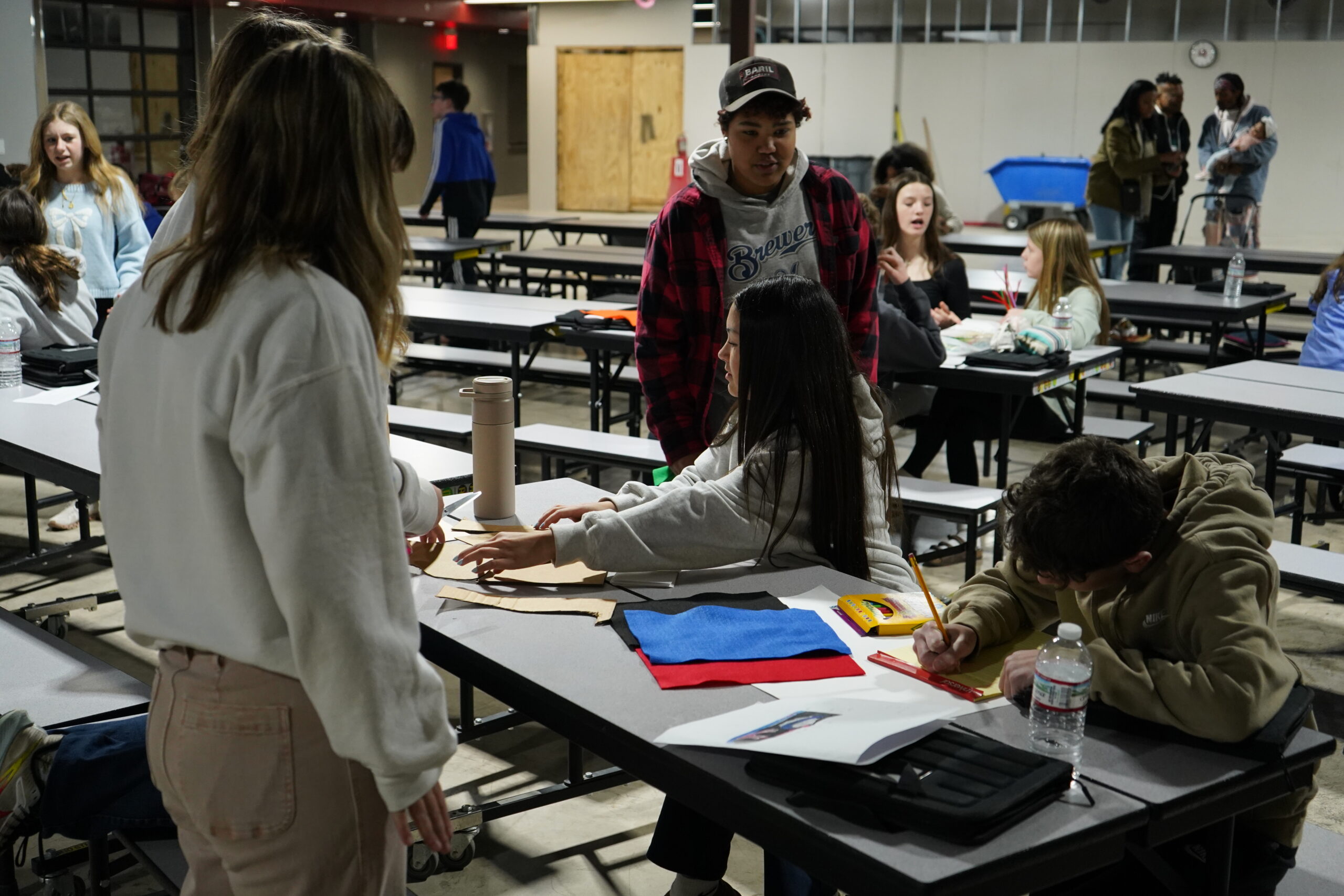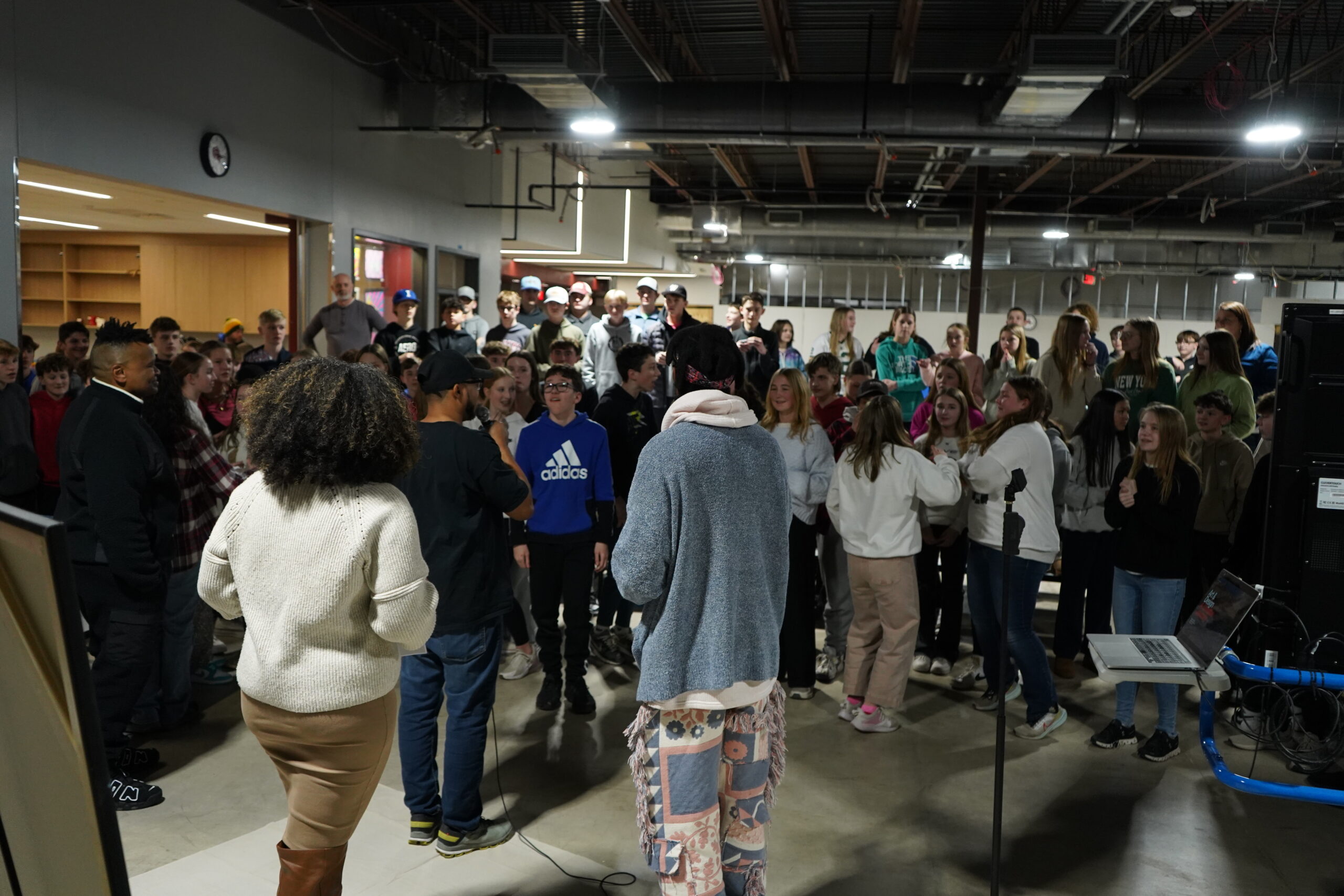 For three years, the Wisconsin Herd has partnered with Artist Patrick “Patcasso” Hunter and DJ Steady Rock, who are STEAM ambassadors with STEAM Revolt, to host a STEAM workshop at a local School. New this year, Wilson Smith III, the first black sneaker designer in the industry, led the workshop alongside Patcasso and DJ Steady Rock. The trio worked with 60 kids from Winneconne Middle School who were challenged to design a shoe using all the elements of STEAM. The groups were given different profiles to build their shoes to accommodate and then presented to a panel of judges on how their shoes meet all the requirements. To close out the workshop, Artist Patcasso performed by taking a blank canvas and turning it into a work of art in minutes to a custom music track by DJ Steady Rock. The Herd provided lunch for all students in attendance as well as tickets to the Wisconsin Herd Black History Month Celebration Game.